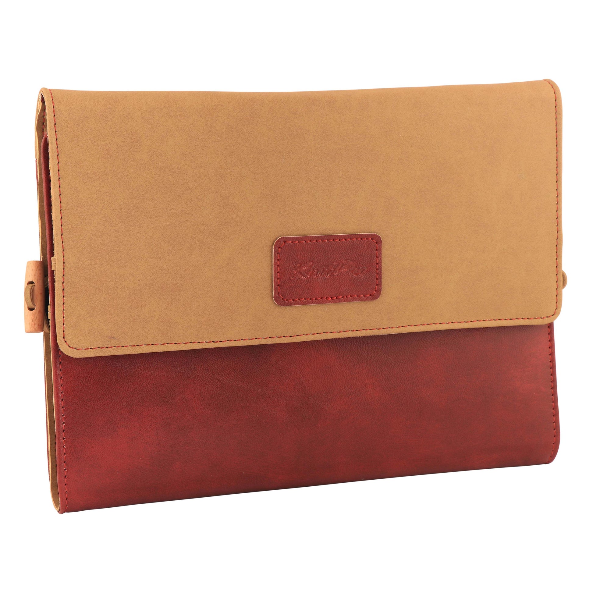 Set of 11 pairs of Ginger interchangeable circular knitting pins packed in premium needle case in burgundy & beige finish. Needle case incorporates a chart keeper; needles in 11 sizes (10cm x 3.50, 4.00, 4.50, 5.00, 5.50, 6.00, 7.00, 8.00, 9.00, 10.00, 12.00mm) to cover all yarn weights; 4 cables (2 x 40cm and 2 x 50cm) in a variety of lengths for all type of projects; 8 end caps; 4 cable keys; 20 stitch markers; matching pen to mark your pattern row; one set of cable connectors to prepare bigger cable lengths. Lightweight, strong & durable needles with perfect points, flawlessly tapered, ideal for all yarns and projects. The smooth wood surface works effortlessly with every type of yarn without slowing down knitting rhythm. The knitter's favourite needle providing hours of pleasurable knitting with no hand fatigue. Special tips are designed to produce circulars in 40cm/16in length. Each tip measures 10cm/4in and is to be used with cable of 20cm/8in length.