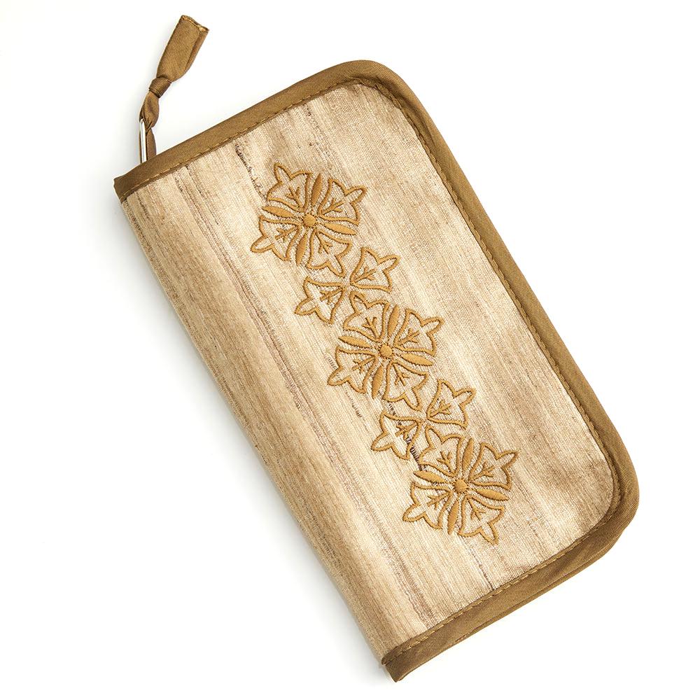 This set of interchangeable knitting pins contains: 9 pairs of 10cm (4in) interchangeable tips in sizes, 3.0, 3.25, 3.50, 3.75, 4.0, 4.5, 5.0, 5.5 & 6.0mm; 2 nylon-coated, stainless steel swivel cords in sizes 40 and 50cm (cord length denotes complete needle length); 4 wooden end caps, 2 tightening tools and 5 colourful tassel stitch markers. Everything comes in a beautiful embroidered Khadi soft silk zippered case to keep your knitting needles safely stored and organised. The knitting pins are made from ebony wood, sourced from Indian government authorised wood stock yards.