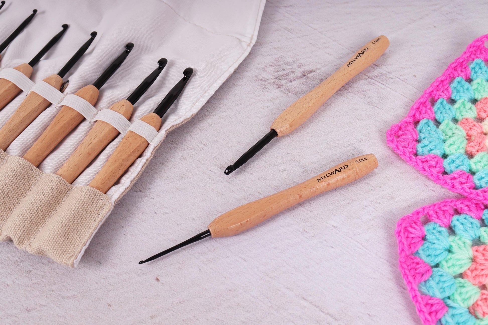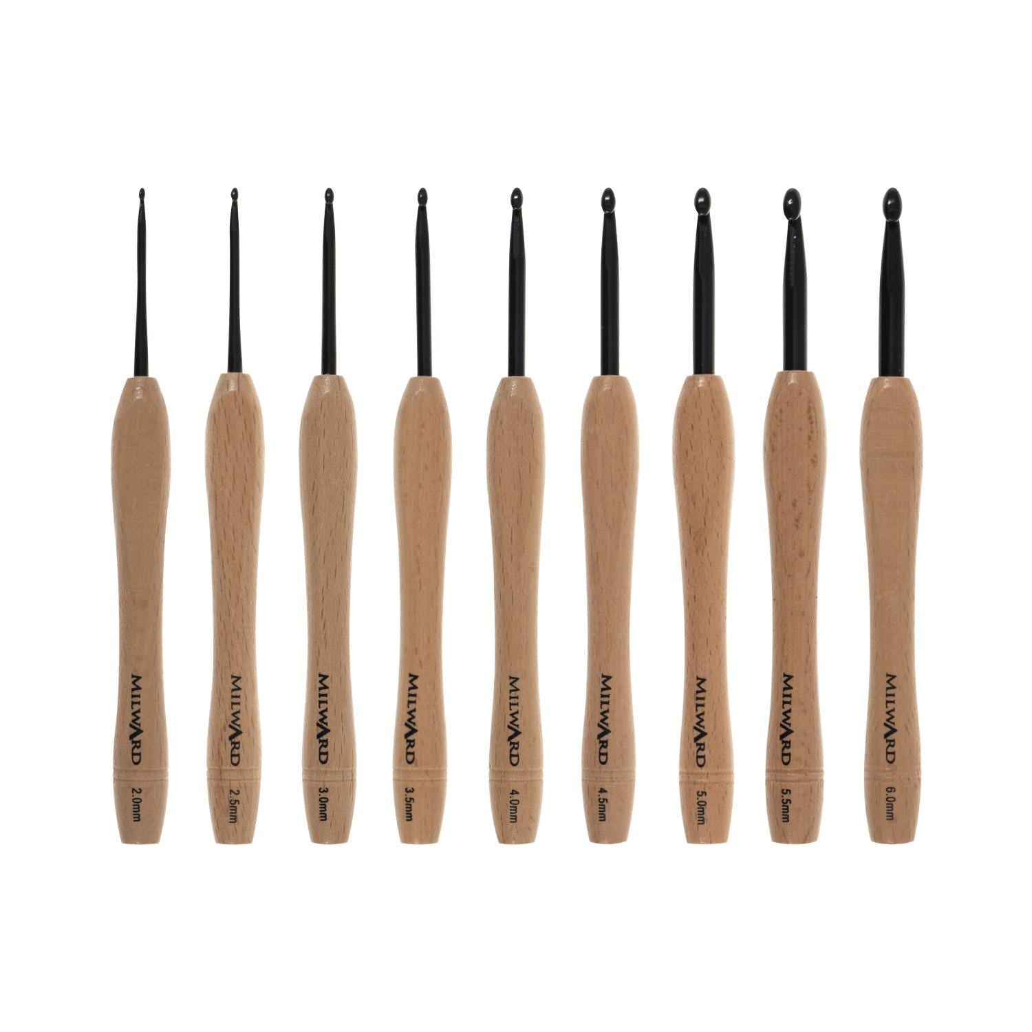 Milward Crochet Hook Set Beech Wooden Handle 14cm x 2.50 - 5.00mm: Pack of 9