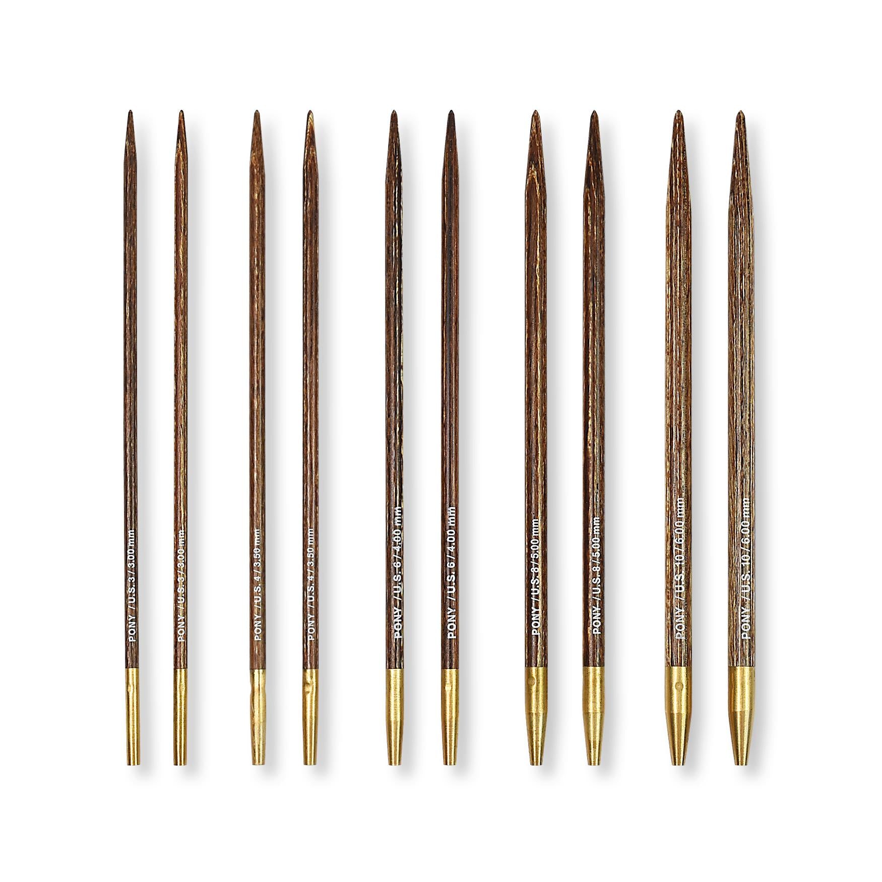 Pony Knitting Pins Double-Ended Sets of Five in Felt Case: 14cm x 3.00 - 6.00mm